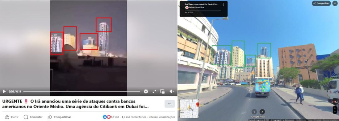 No entanto, o vídeo viral não corresponde a um ataque iraniano a um banco em Dubai, mas a um edifício residencial no Bahrein.