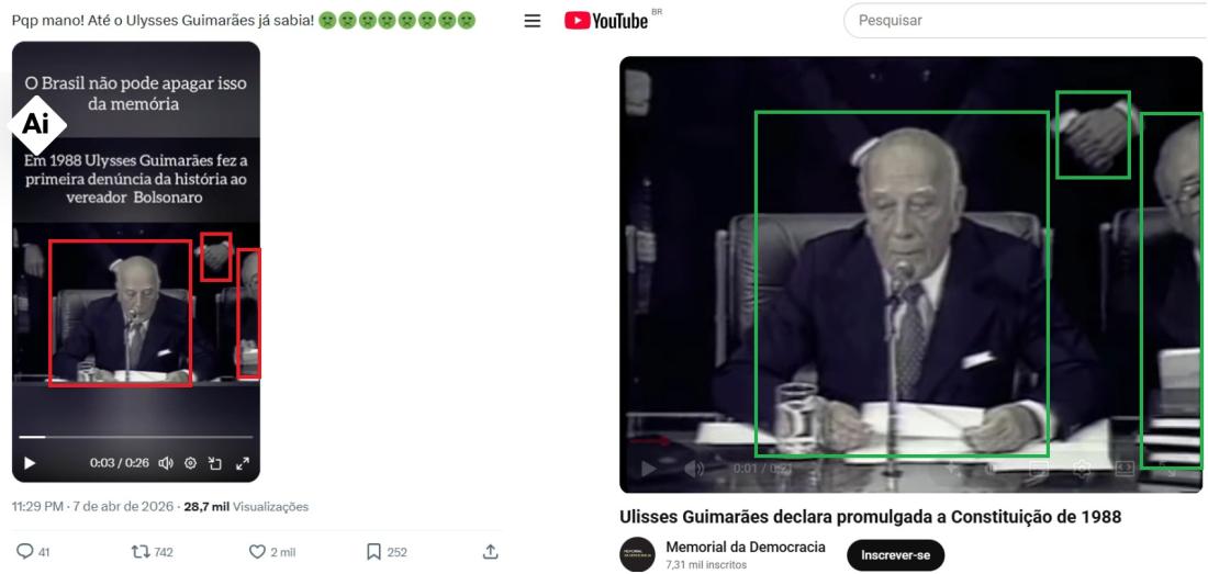 Uma busca reversa no Google Lens pela captura de tela do vídeo viralizado exibiu o conteúdo original publicado no YouTube, em 3 de dezembro de 2014, no canal Memorial da Democracia.