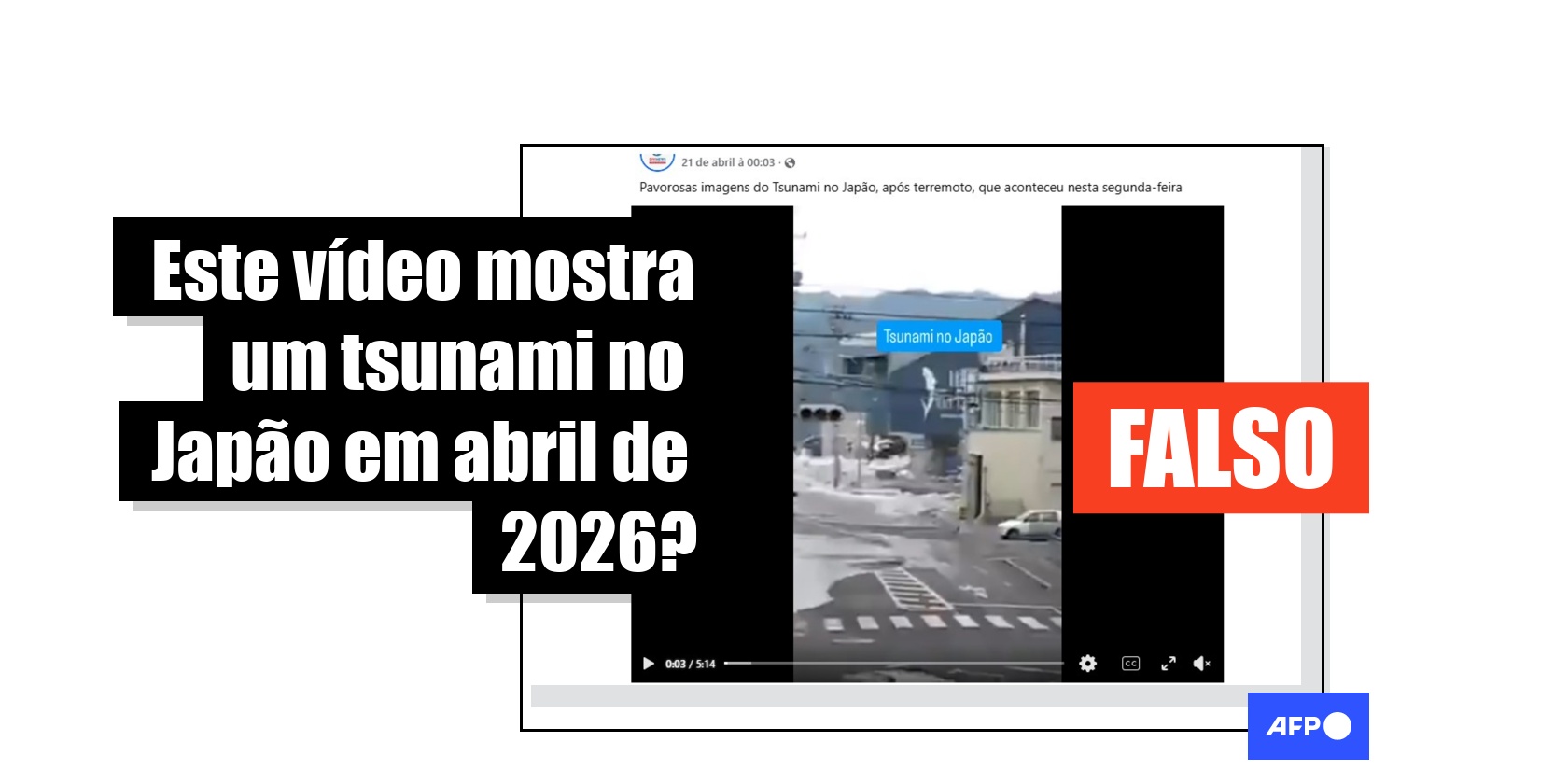 Um terremoto de magnitude 7,7 atingiu o norte do Japão em 20 de abril de 2026, seguido de alertas de possíveis tsunamis e maiores tremores na área. Neste contexto, publicações visualizadas mais de 63 mil vezes nas redes sociais compartilham um vídeo que mostraria o maremoto alcançar e destruir uma cidade japonesa. Mas isso é falso: a gravação mostra um tsunami ocorrido no país em 2011.