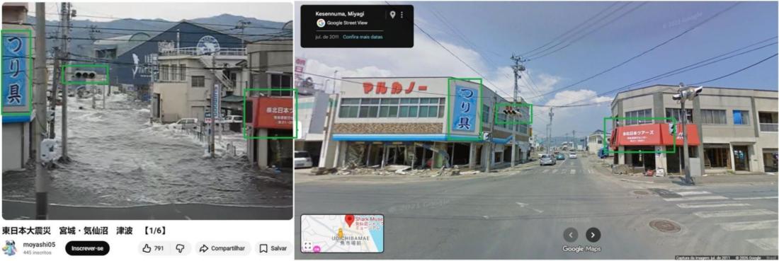 A pesquisa também encontrou as mesmas imagens publicadas pela rede de notícias japonesa All-Nippon News Network no YouTube, em 17 de janeiro de 2020. As imagens mostram como um tsunami atingiu a cidade de Kesennuma em 11 de março de 2011.