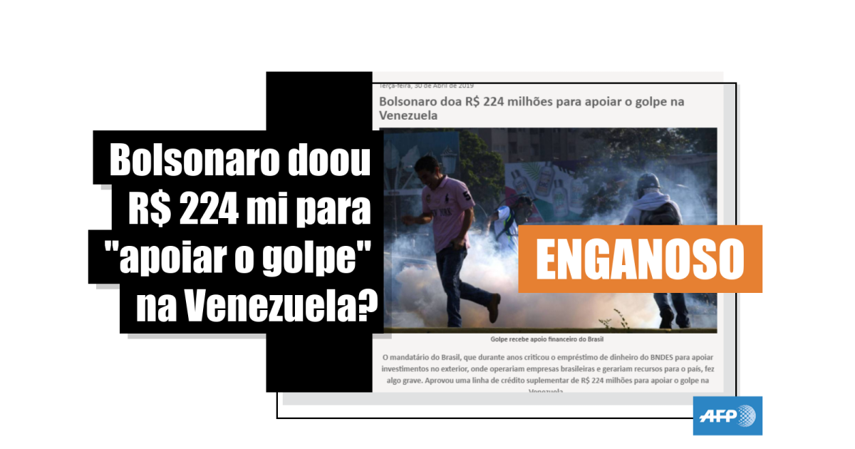 “O mandatário do Brasil, que durante anos criticou o empréstimo de dinheiro do BNDES para apoiar investimentos no exterior, onde operariam empresas brasileiras e gerariam recursos para o país, fez algo grave. Aprovou uma linha de crédito suplementar de R$ 224 milhões para apoiar o golpe na Venezuela”, diz um trecho do artigo viralizado no Facebook.