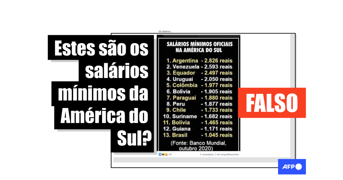 É falsa tabela viralizada com ranking de salários mínimos na América do Sul