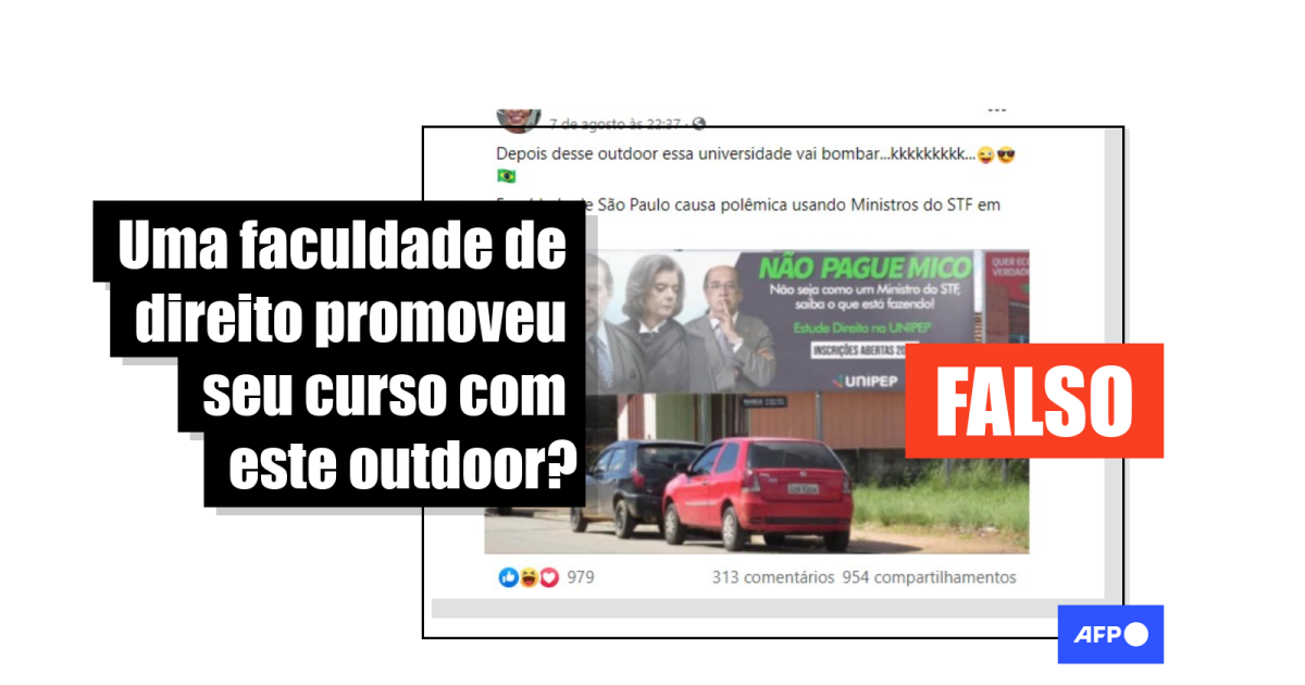 É uma montagem o outdoor em que faculdade de direito ironiza ministros do STF