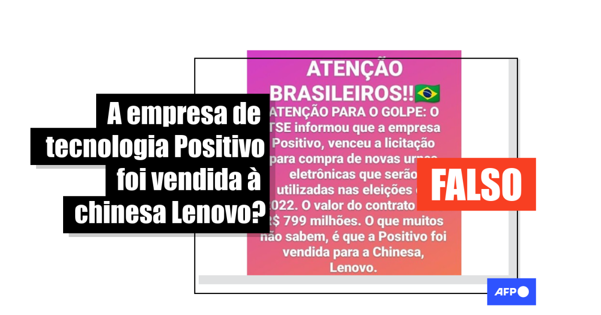 Em resumo, é falso que a empresa Positivo Tecnologia, vencedora da licitação para produzir urnas eletrônicas para as eleições de 2022, tenha sido vendida à chinesa Lenovo. Rumores de uma possível compra foram reportados em 2010, mas a transação não foi concretizada, como confirmou um representante da companhia ao AFP Checamos.