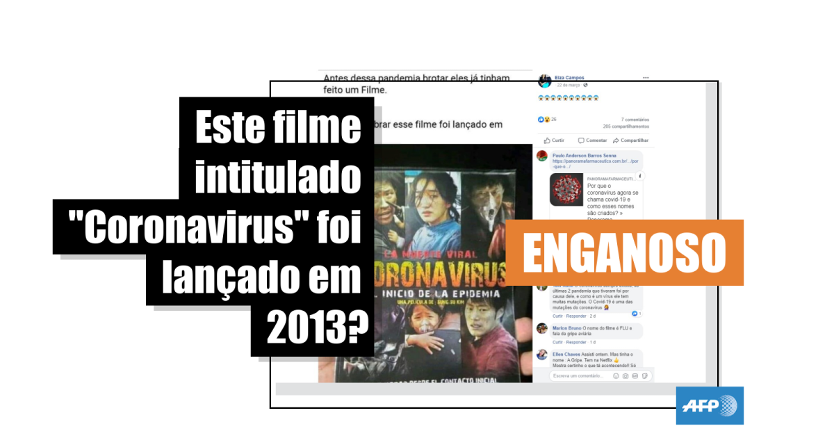“Antes dessa epidemia brotar eles já tinham feito um filme. Malditos… Só para lembrar esse filme foi lançado em 2013”, diz uma publicação compartilhada centenas de vezes no Facebook desde o último dia 22 de março. A legenda acompanha uma foto da capa de um DVD supostamente intitulado “Coronavírus: o início da epidemia”, em espanhol.