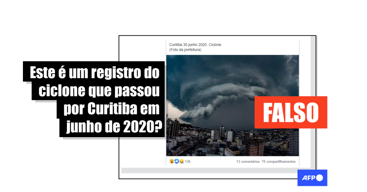 No entanto, é falso que a imagem viralizada nas redes sociais mostre o ciclone extratropical que atingiu Curitiba, no Paraná, no final de junho de 2020. A imagem foi tirada pelo fotógrafo Gabriel Zaparolli na cidade de Torres, no Rio de Grande do Sul, em dezembro de 2019 durante a passagem da chamada “supercélula” pela cidade.