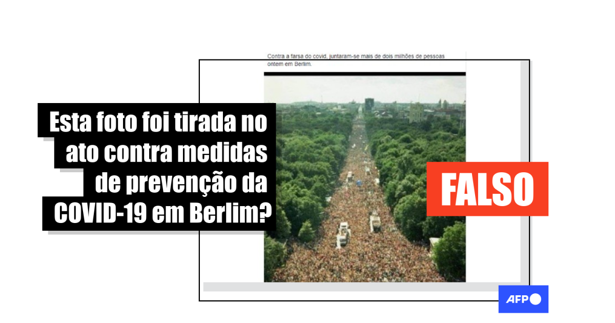 “Contra a farsa do covid, juntaram-se mais de dois milhões de pessoas ontem em Berlim [sic]”, diz postagem compartilhada mais de 200 vezes no Facebook desde o último dia 2 de agosto.