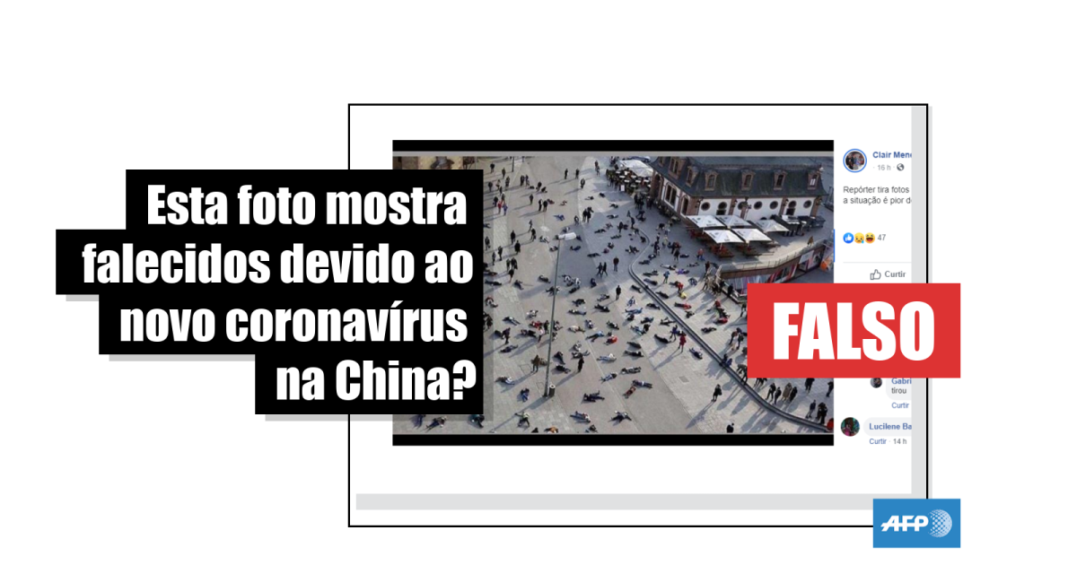 “ISSO E NA CHINA. NAO E Montagem !! E PESSOAS MORTAS. PELO VIRUS CORONAVIRUS. MEU DEUS AS PESSOAS. CAI NO CHAO. DO NADA [sic]”, “Repórter tira fotos escondido na China empedemia a situação é pior do que a mídia tá falando [sic]” e “Realidade da China ; Jesus tá voltando ;. acorda igreja [sic]”, dizem as publicações (1, 2, 3), compartilhadas desde 29 de janeiro último.