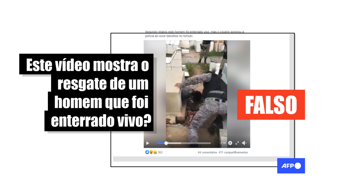 O vídeo, no qual dois agentes com uniformes militares ajudam um homem a sair de um túmulo, também ilustra postagens que afirmam que o episódio aconteceu no estado do Maranhão. “Um erro médico fez homem ser enterrado vivo, o ocorrido aconteceu hoje a tarde no Maranhão”, escreveu um usuário ao publicar as imagens.