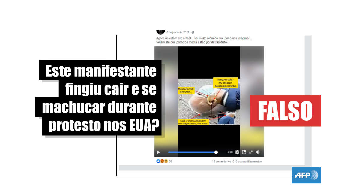 Este manifestante não fingiu machucar a cabeça em protesto por morte de George Floyd