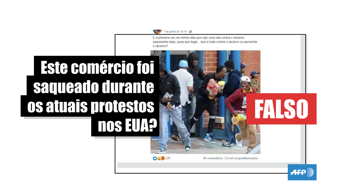 “E [sic] a primeira vez na minha vida que vejo uma luta contra o racismo saqueando lojas, poxa que legal....isso é lutar contra o racismo ou aumentar o racismo?”, diz a legenda que acompanha a imagem, em publicações compartilhadas mais de 4 mil vezes no Facebook (1, 2, 3) desde 1º de junho.