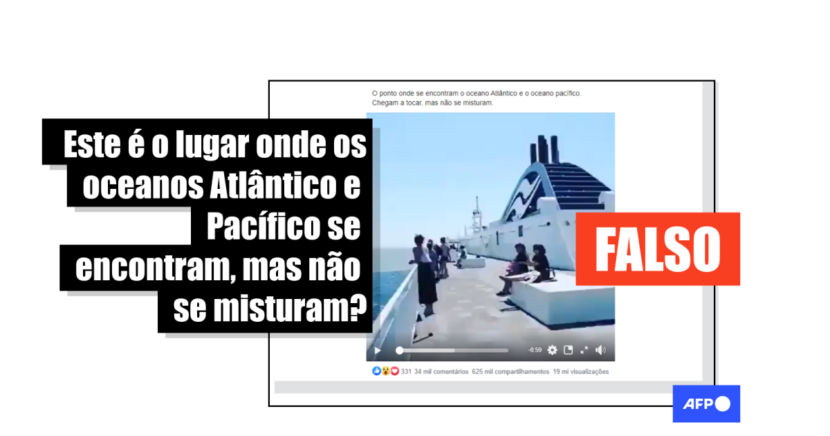 Mas apesar do que afirmam as postagens viralizadas, na gravação não se vê os oceanos Atlântico e Pacífico sem se misturar.