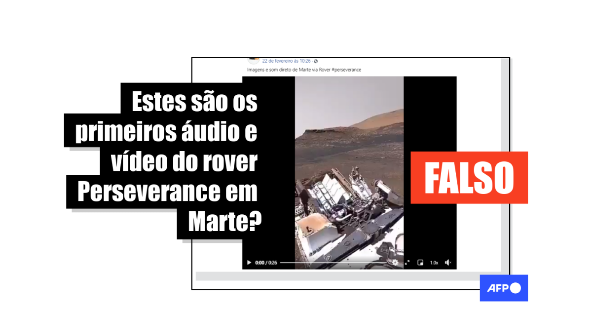 “Primeiro vídeo do Perseverance em Marte filmado hoje o som de Marte. fantástico!” e “Imagens e som direto de Marte via Rover #perseverance”, indicam as legendas de algumas publicações compartilhadas dezenas de vezes no Facebook (1, 2, 3).