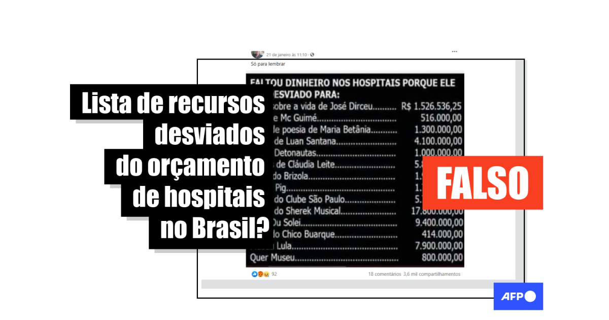 Em resumo, é falso que os valores listados na tabela tenham sido “desviados” de hospitais para produzir projetos culturais. Os números são, em sua maioria, recursos que foram autorizados para captação via lei Rouanet, mas que não foram efetivamente captados.