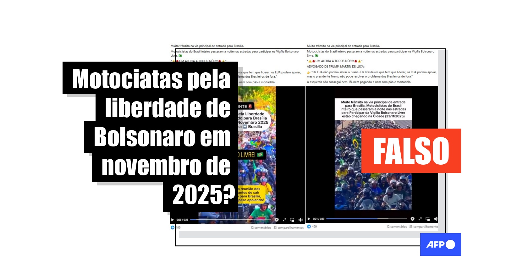 Vídeos de motociatas em julho de 2025 circulam como se fossem atos pró-Bolsonaro após sua prisão em novembro Publicado em 26 de novembro de 2025 às 20:52