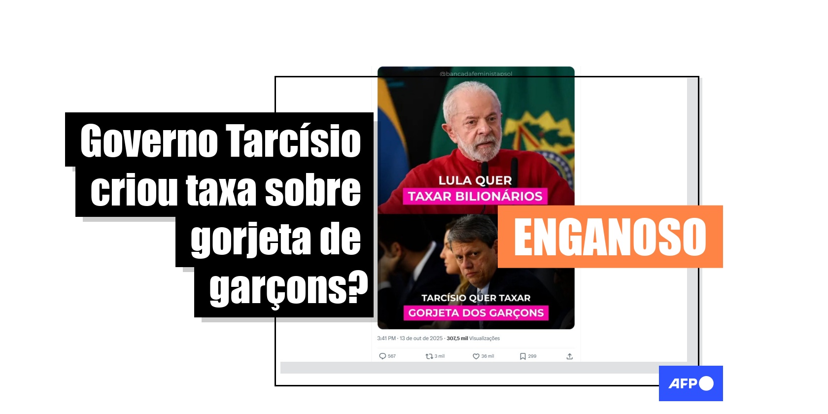 Governo Tarcísio não criou taxa sobre gorjetas de garçons de São Paulo Publicado em 16 de outubro de 2025 às 21:29