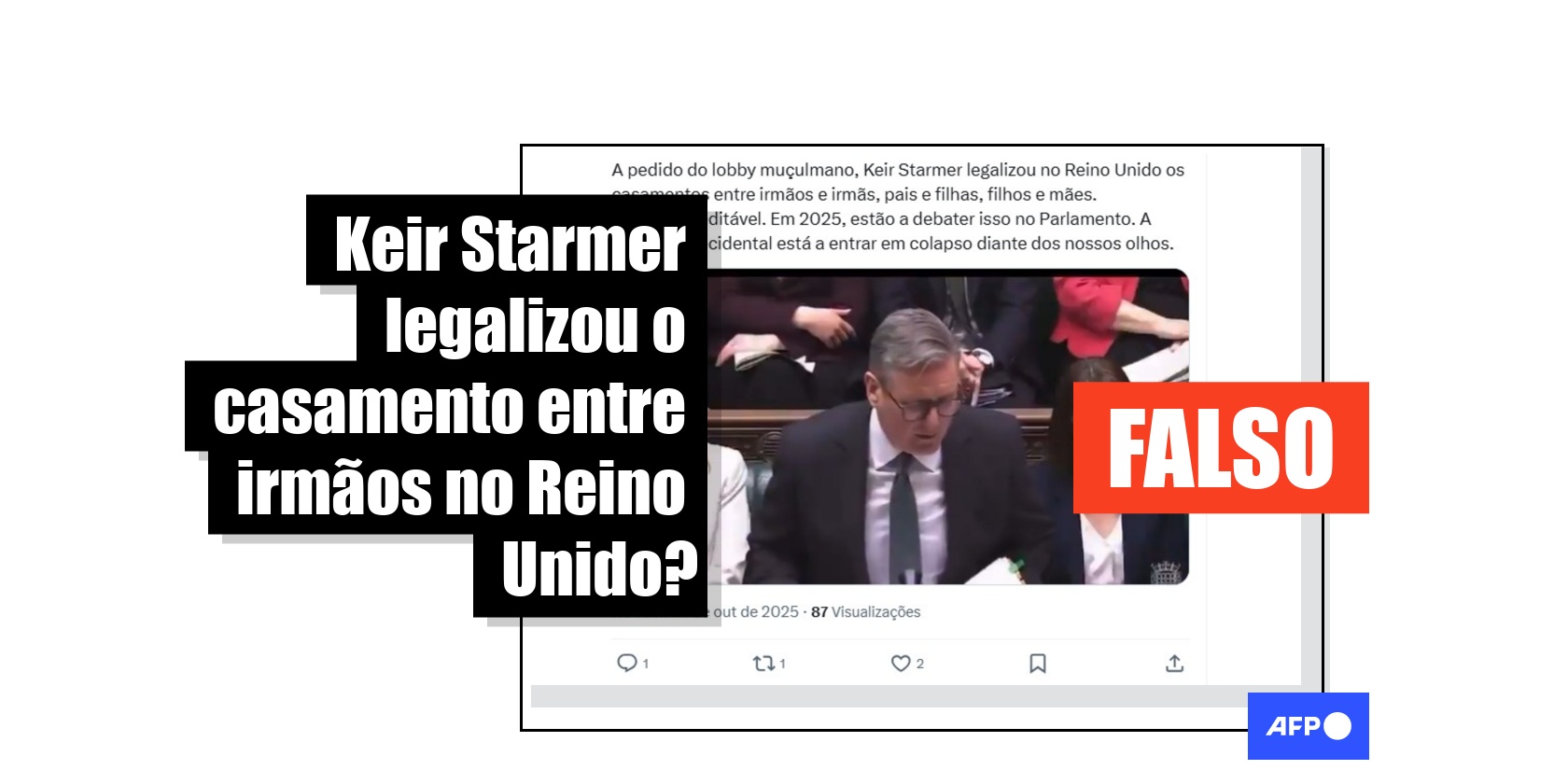 É falso que Reino Unido legalizou casamentos entre irmãos e entre pais e filhos; país permite união entre primos Publicado em 16 de outubro de 2025 às 20:31