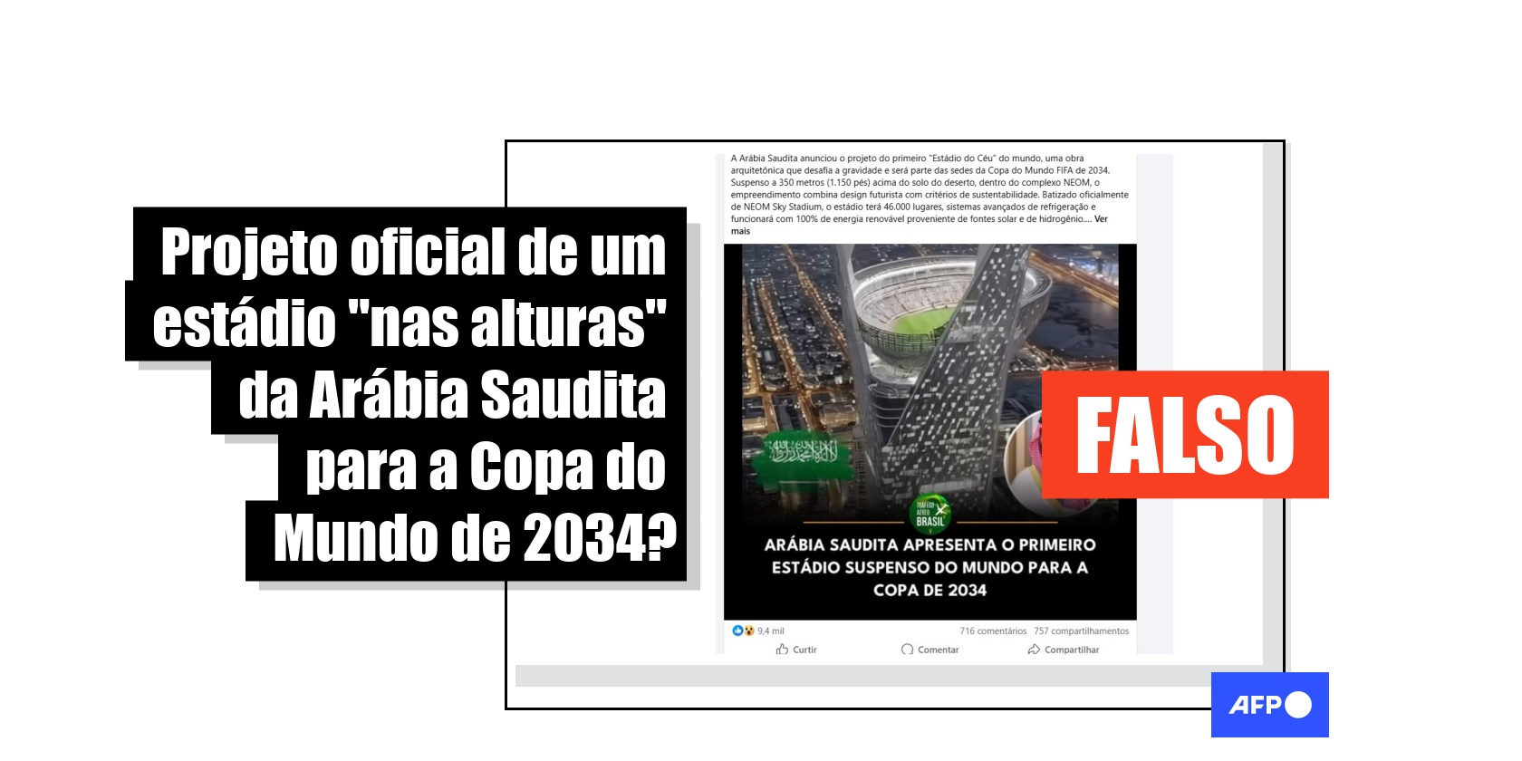 Posts associam falsamente um vídeo viral a projeto da Arábia Saudita para estádio na Copa do Mundo de 2034 Publicado em 3 de novembro de 2025 às 19:09