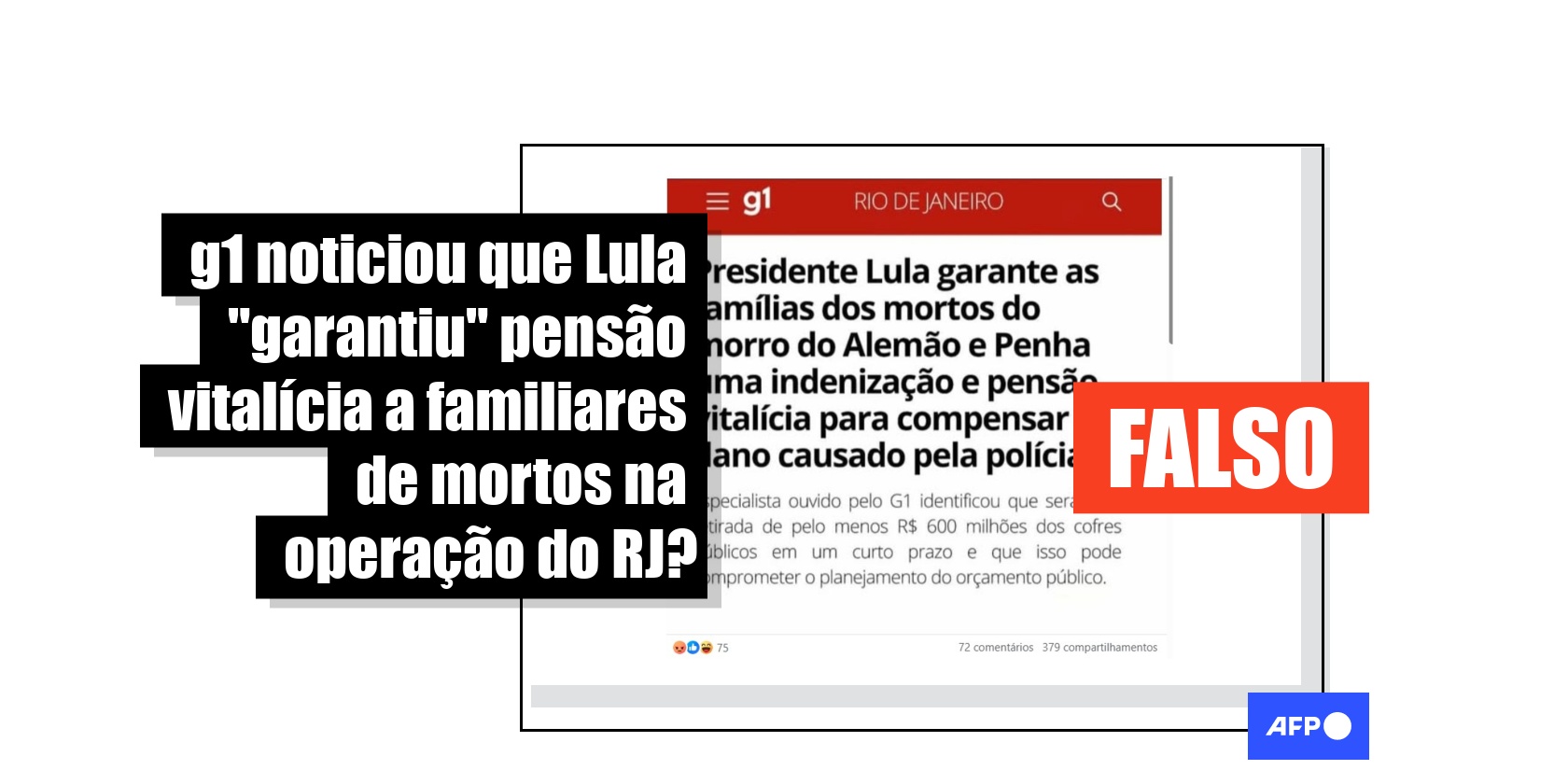 Portal g1 não publicou notícia de que Lula “garantiu” pensão aos familiares de mortos na operação do Rio Publicado em 6 de novembro de 2025 às 18:27