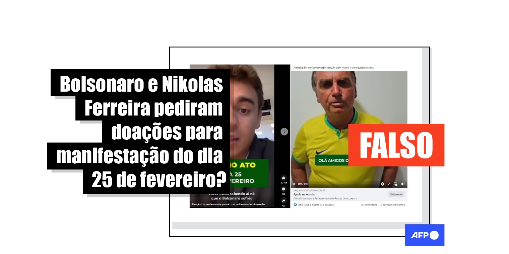 É montagem vídeo de Bolsonaro e Nikolas Ferreira pedindo doações para manifestação de 25/02 Publicado em 6 de novembro de 2025 às 15:11