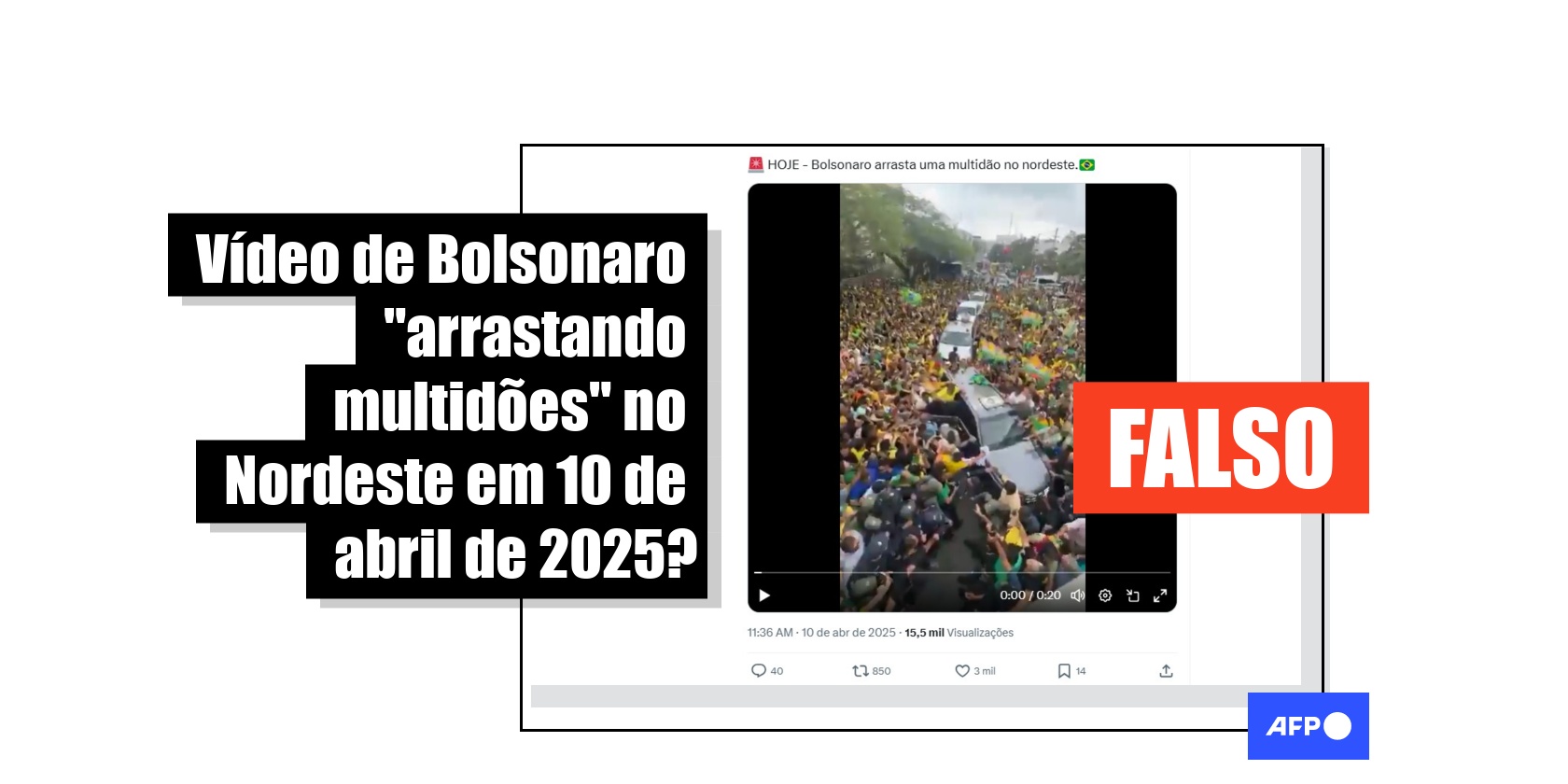 Vídeo de ato em 2024 circula como se mostrasse manifestação de Bolsonaro no Nordeste em 2025 Publicado em 15 de janeiro de 2026 às 17:48
