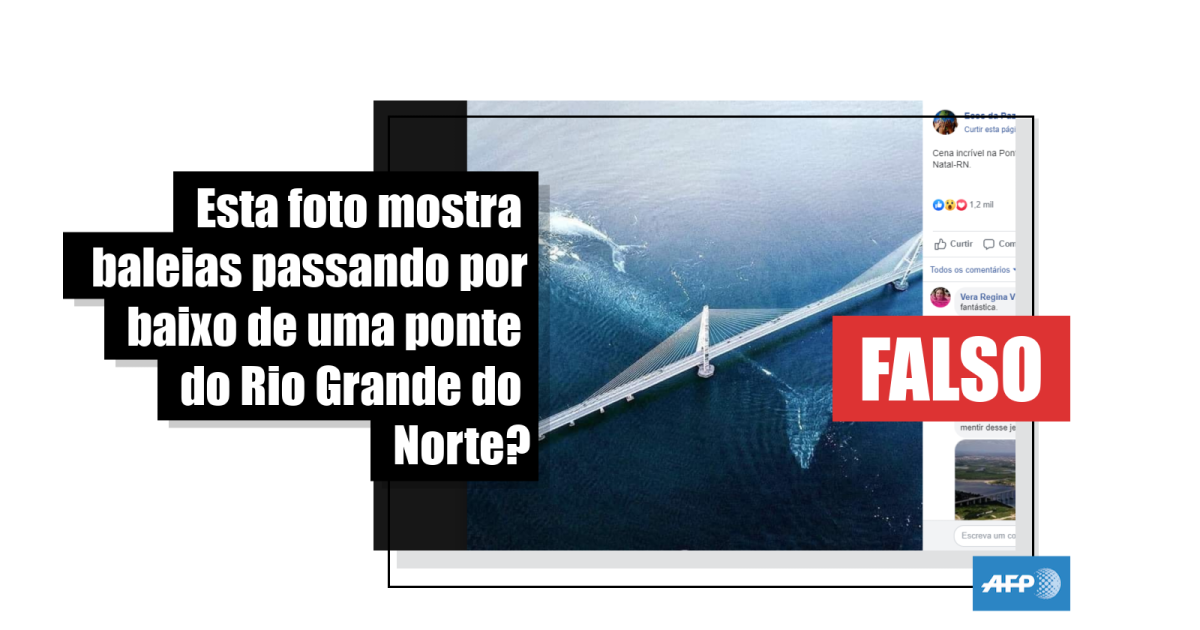 Em resumo, a fotografia que mostra duas baleias, sendo uma delas de grande tamanho, passando por baixo de uma ponte é uma montagem. Além disso, a construção em questão não é a ponte Newton Navarro, localizada em Natal, no Rio Grande do Norte, mas sim a ponte Sungai Johor, que fica na Malásia.