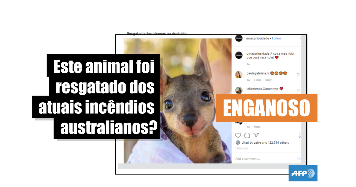 “Resgatado das chamas na Austrália”, diz o texto que acompanha a foto de um filhote de canguru, em publicações curtidas mais de 160 mil vezes no Instagram (1, 2, 3) ao menos desde 8 de janeiro deste ano.