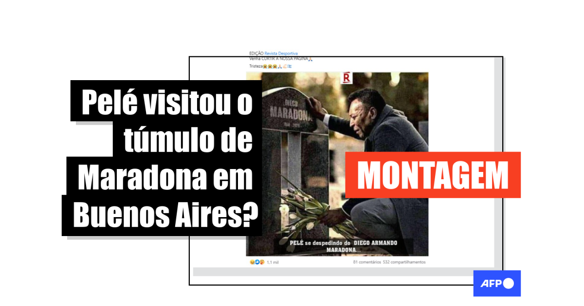 Em resumo, a imagem que mostra Pelé em frente ao túmulo do recentemente falecido Diego Maradona é, na verdade, uma montagem.