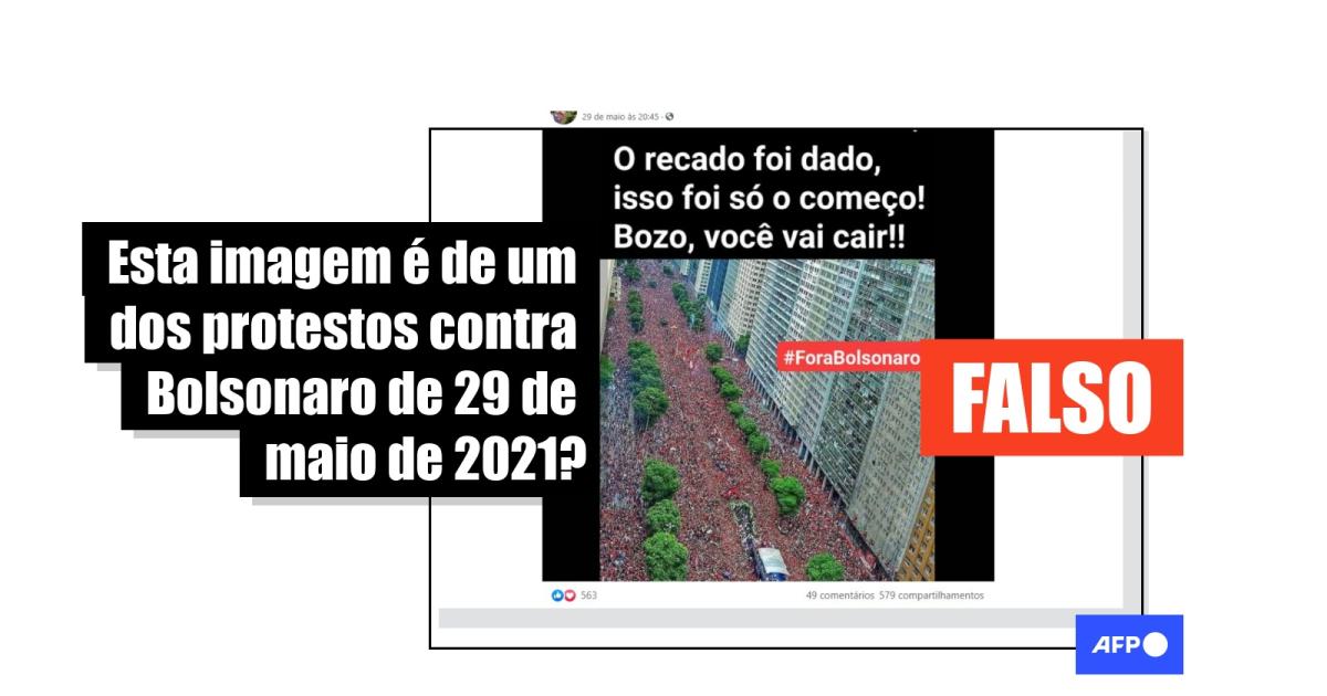 “O recado foi dado, isso foi só o começo! Bozo, você vai cair!!”, diz o texto sobreposto à imagem em publicações compartilhadas mais de 3.800 vezes no Facebook (1, 2, 3) e Instagram desde 29 de maio. “HOJE. Avenida Presidente Vargas, Rio de Janeiro #ForaBolsonaro”, indicou outro usuário.