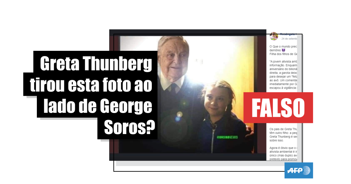 Essa alegação circulou amplamente em português. Contudo, não há registros de que a ativista sueca tenha qualquer relação de parentesco com o investidor húngaro-americano.