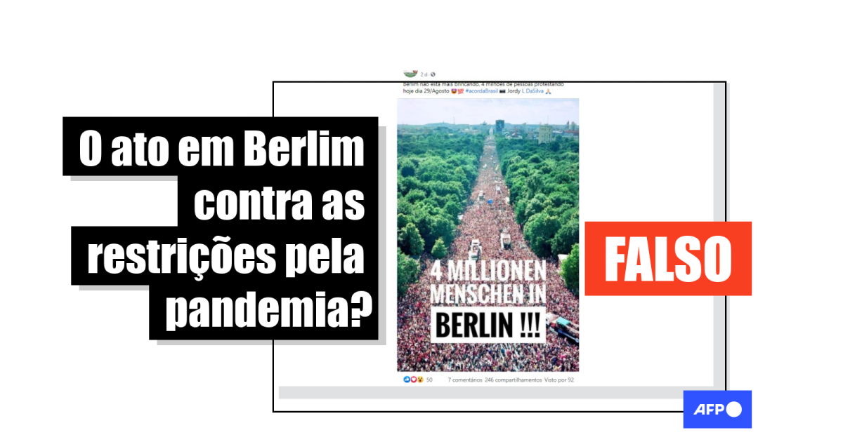 Esta mesma imagem já havia sido compartilhada no início de agosto como se mostrasse uma outra manifestação realizada em Berlim contra as medidas restritivas adotadas durante a pandemia do coronavírus.