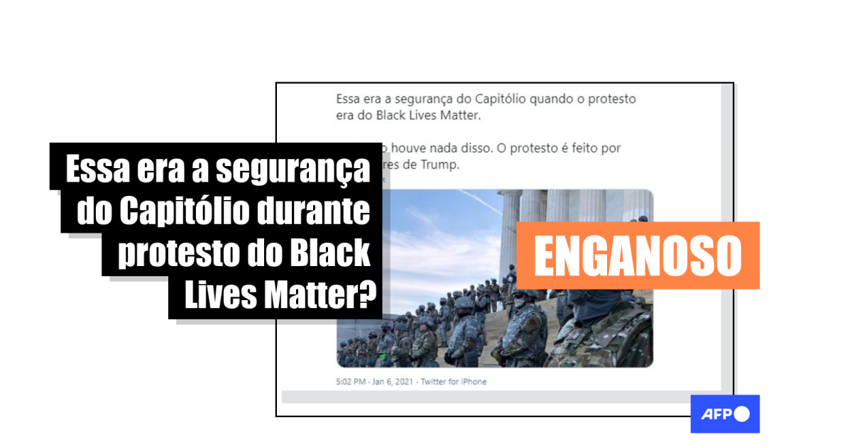 “Essa era a segurança do Capitólio quando o protesto era do Black Lives Matter. Hoje não houve nada disso. O protesto é feito por apoiadores de Trump”, diz uma das postagens, compartilhadas mais de 7 mil vezes no Facebook (1, 2, 3), Instagram (1, 2, 3) e Twitter (1, 2, 3) desde o último dia 6 de janeiro.
