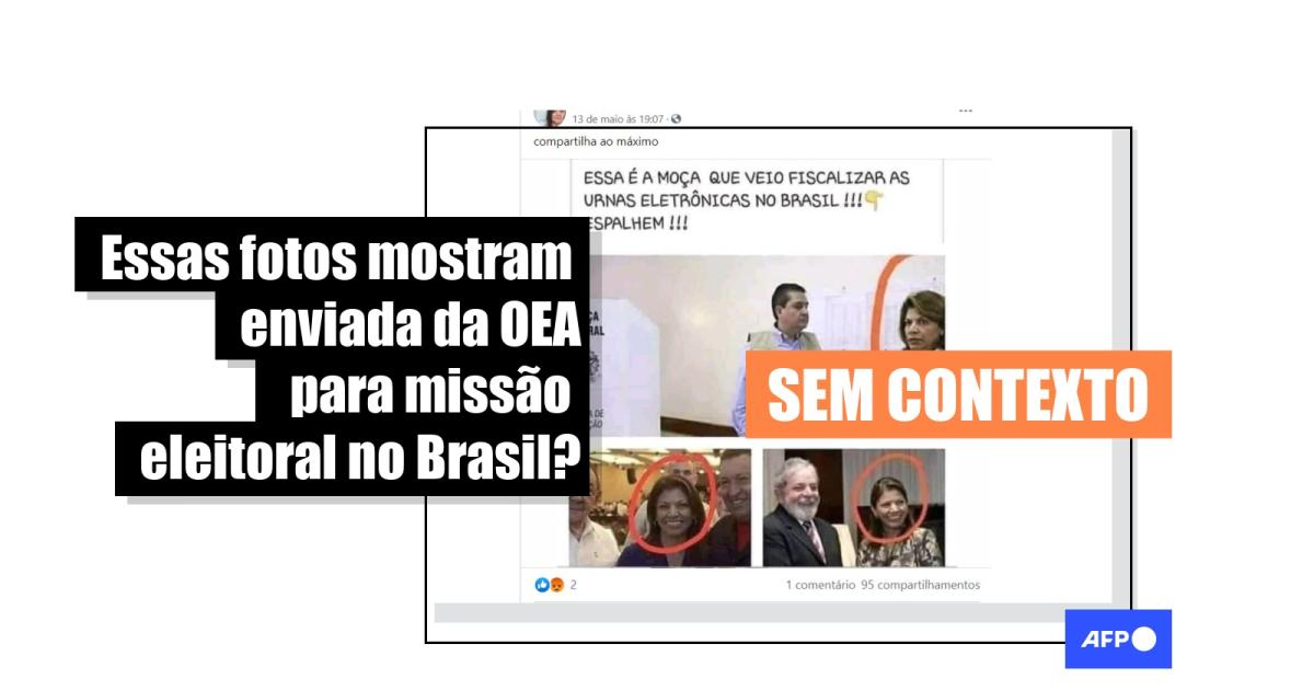 O AFP Checamos não encontrou a origem da mesma foto, mas em uma matéria do jornal O Globo é possível ver um registro semelhante, em que a mulher aparece com as mesmas roupas e acompanhada pelo mesmo homem, observando o primeiro turno da votação em Brasília, em 7 de outubro de 2018. A foto é descrita pela legenda: “Laura Chinchilla, chefe da missão da OEA no Brasil, acompanha votação em Brasília”.