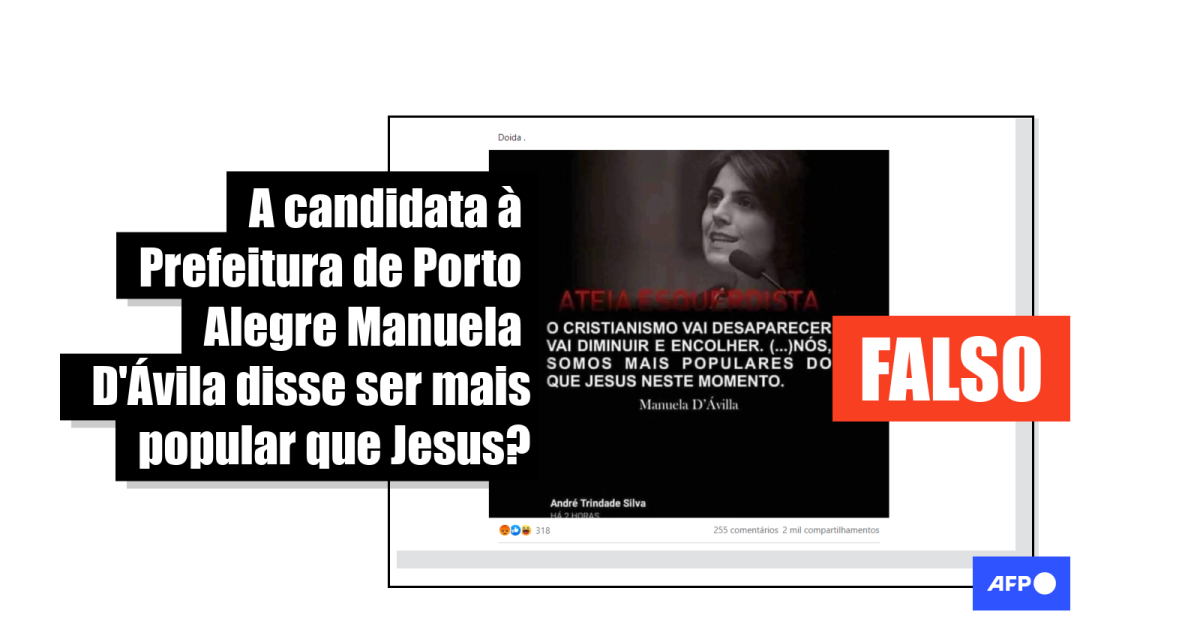 Em resumo, é falso que a candidata do PCdoB à Prefeitura de Porto Alegre, Manuela D’Ávila, tenha dito que o cristianismo vai desaparecer e que ela é mais popular do que Jesus. Essa afirmação circula desde 2018 nas redes e já foi desmentida pela própria candidata. A declaração foi dada, na verdade, por John Lennon em entrevista concedida nos anos 1960.