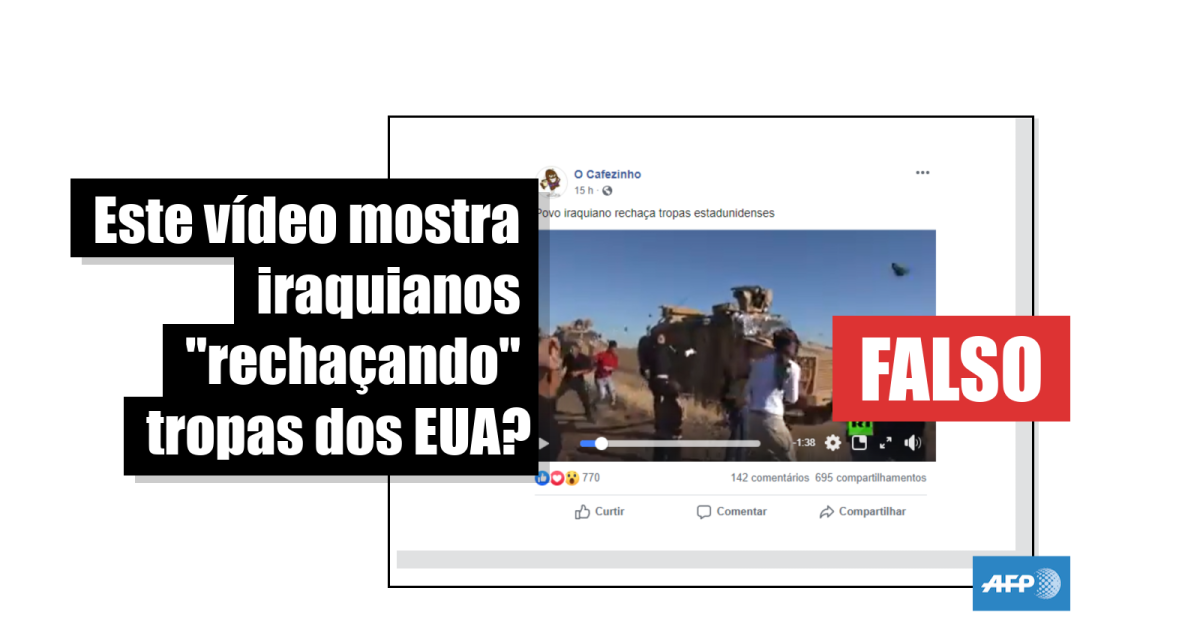 “Povo iraquiano rechaça tropas estadunidenses”, dizia a legenda do vídeo, já apagado, compartilhado mais de 700 vezes no Facebook desde 5 de janeiro - data em que o Parlamento do Iraque aprovou uma resolução pedindo a expulsão de tropas dos Estados Unidos do país.