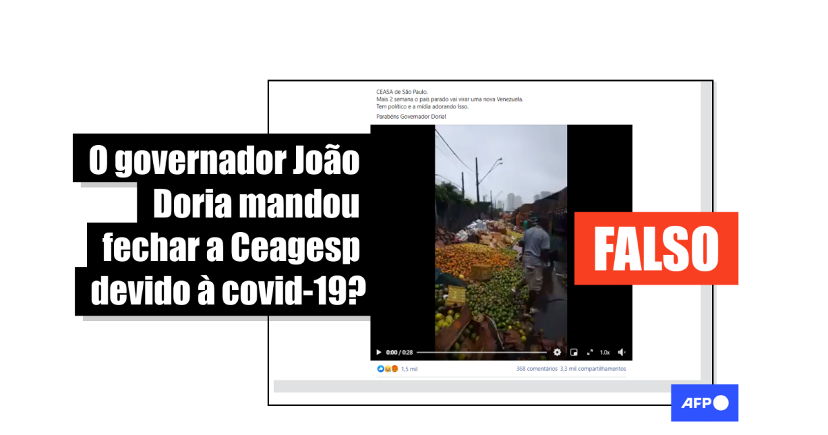 “CEASA de São Paulo. Mais 2 semana o país parado vai virar uma nova Venezuela. Tem político e a mídia adorando Isso. Parabéns Governador Doria!” e “Doria fechou o Ceasa, e a produção q chegou, teve q ser jogada fora. Esse cara é um monstro”, foram algumas das legendas das publicações compartilhadas no Facebook (1, 2, 3) ao menos desde 26 de março de 2020 e que continuavam circulando em janeiro de 2021.