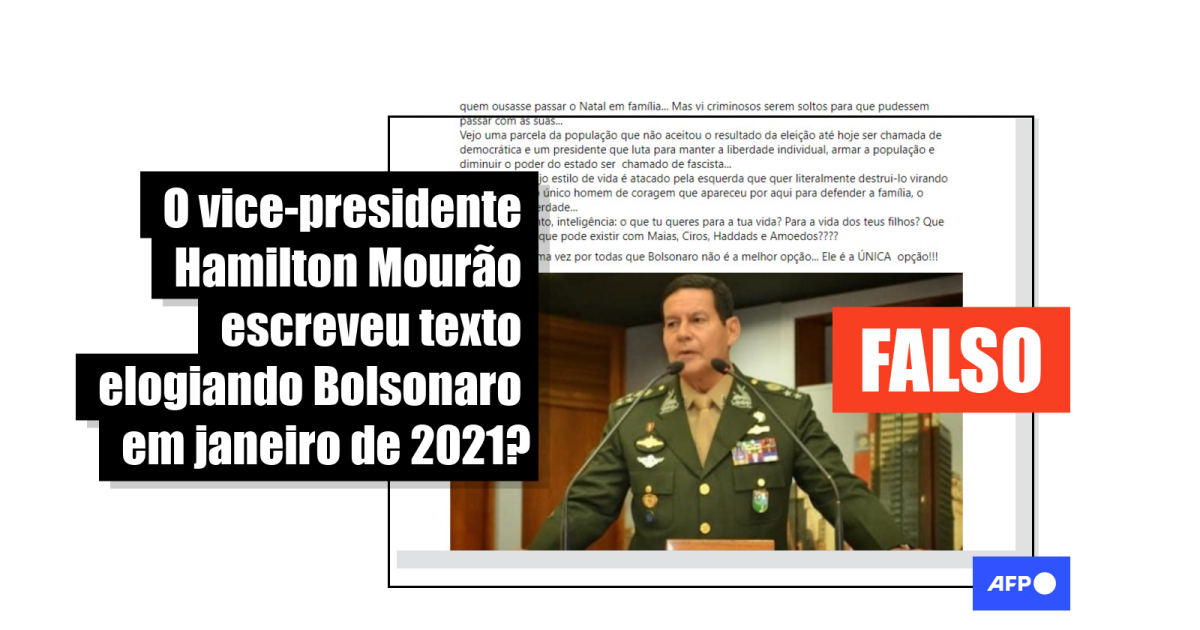 Contactada pelo AFP Checamos, a assessoria de imprensa da Vice-Presidência negou que Mourão tenha escrito a mensagem compartilhada nas redes.