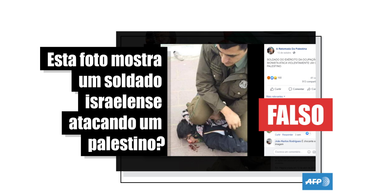 Em resumo, é falso que a foto viralizada mostre um soldado israelense atacando um jovem palestino. A imagem circula desde outubro de 2016 e retrata, na verdade, um agente da força policial chilena dos Carabineros.