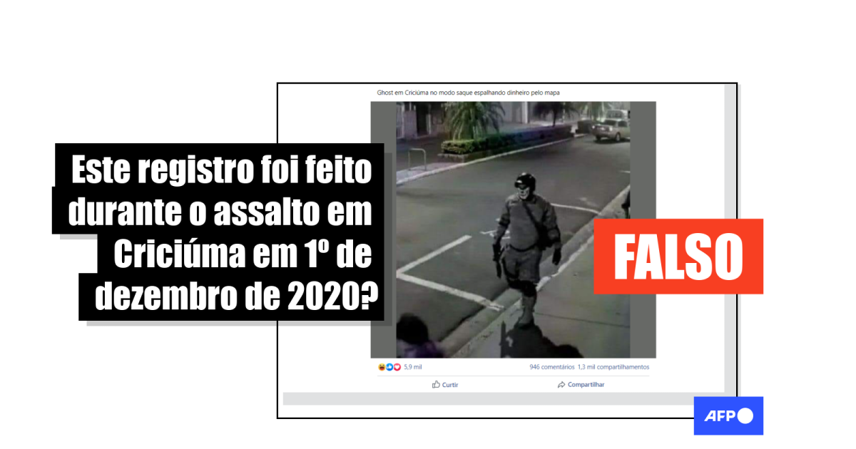 Em resumo, a imagem de um homem, usando um lenço que cobre o rosto com uma estampa de caveira, não foi registrada no grande roubo ocorrido na madrugada de 1º de dezembro em Criciúma, Santa Catarina. Na realidade, ela foi feita através de uma câmera de segurança durante um assalto em dezembro de 2019 em Botucatu, São Paulo.