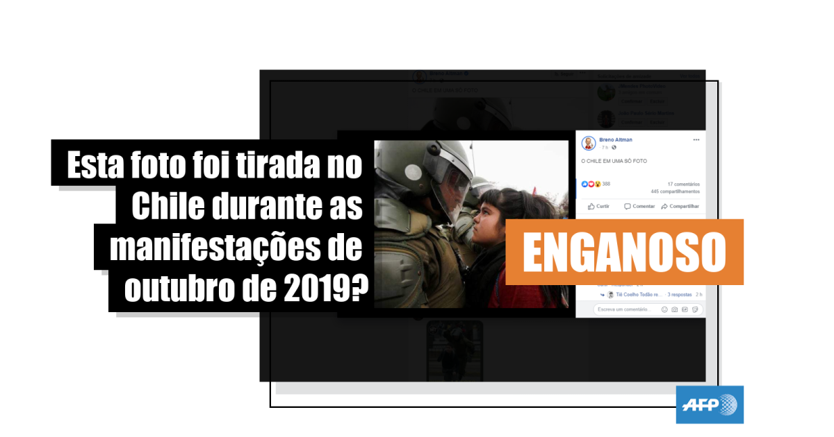 No entanto, uma busca reversa pela imagem mostra que ela não foi tirada durante os protestos que abalam o Chile desde o último dia 18 de outubro.