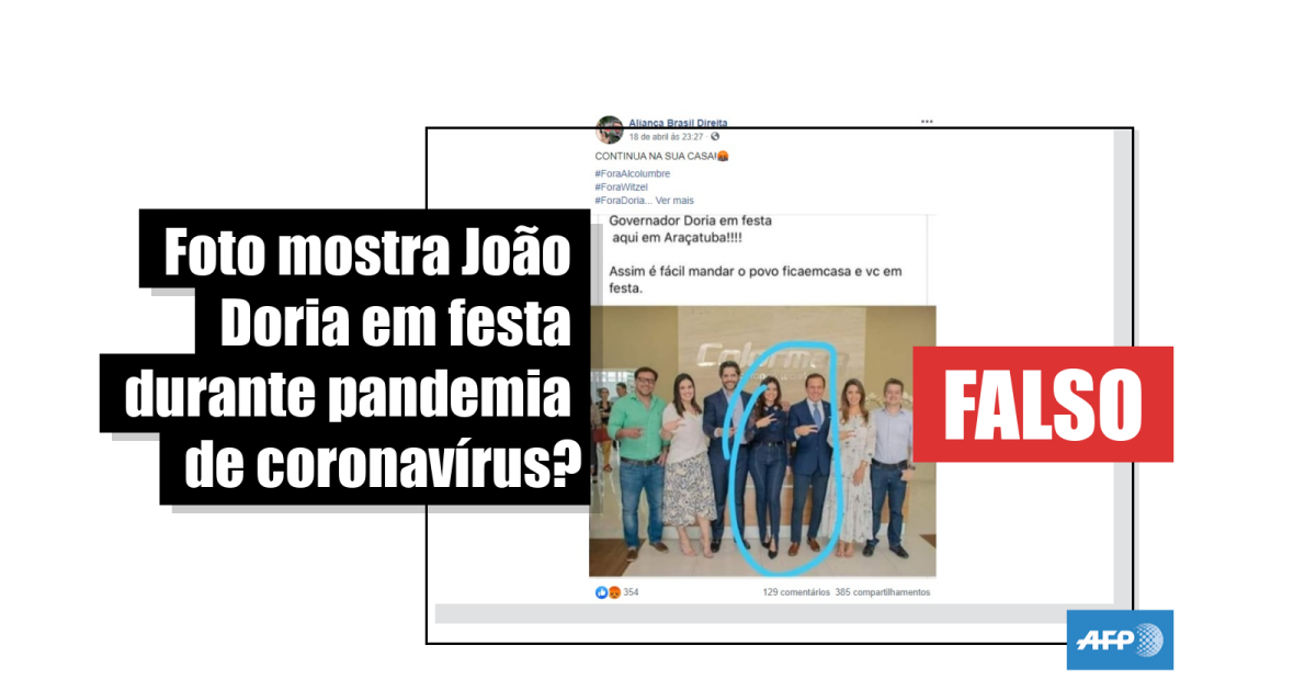 Procurada pela equipe de checagem da AFP, a assessoria do governo de São Paulo afirmou que “ao contrário do que foi publicado em redes sociais, o Governador João Doria não esteve em Araçatuba neste sábado (18)”. “A informação é mentirosa, leviana e menospreza os esforços do Governo de São Paulo em conscientizar a população para a importância do isolamento social”, acrescentou.