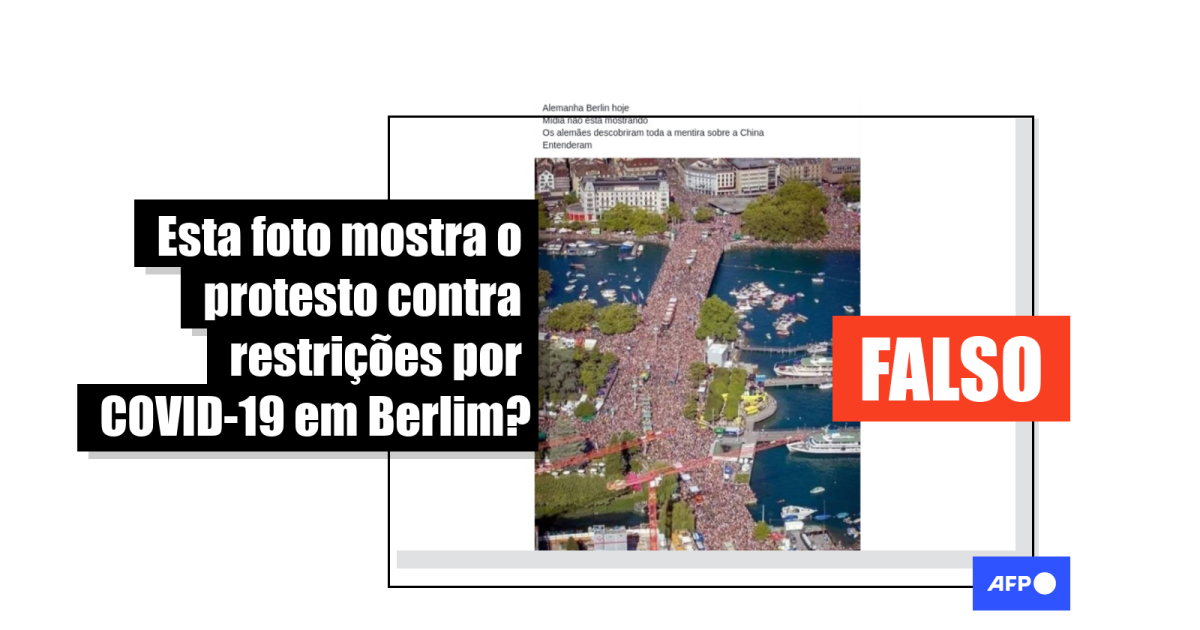 Em resumo, é falso que a imagem compartilhada em diversos idiomas mostre a manifestação realizada em Berlim em 1º de agosto contra as medidas de restrição impostas para reduzir a propagação do novo coronavírus. A foto mostra uma festival de música realizado em Zurique, na Suíça.