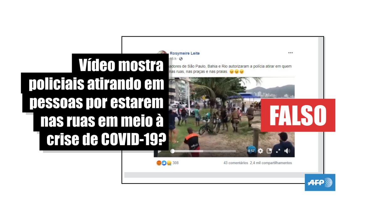 “Governadores de São Paulo, Bahia e Rio autorizaram a polícia atirar em quem estiver nas ruas, nas praças e nas praias”, diz uma publicação, compartilhada mais de 2.400 vezes no Facebook desde 13 de abril deste ano.