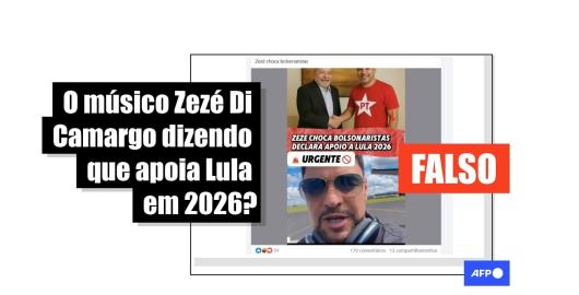 Imagem Inteligência Artificial Publicado em 22/08/2025 Zezé Di Camargo não gravou vídeo declarando apoio a Lula em 2026; material foi criado com inteligência artificial