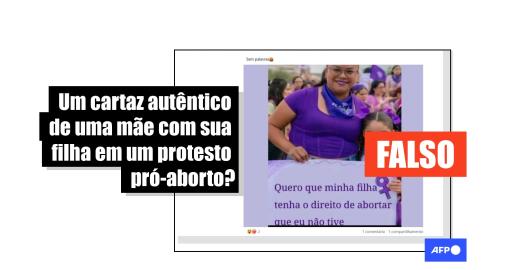 Imagem Aborto Publicado em 24/10/2025 Não é real a foto de uma criança ao lado de sua mãe defendendo o aborto “ao qual não teve direito”