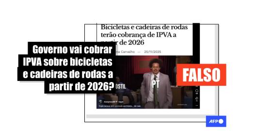 Imagem Publicado em 28/11/2025 Publicações alegam falsamente que governo irá cobrar IPVA sobre bicicletas e cadeiras de rodas