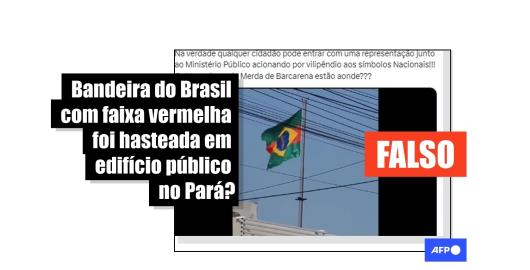 Imagem Publicado em 21/11/2023 Bandeira brasileira não foi tingida de vermelho no Pará; símbolo representa a cidade de Barcarena