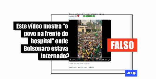 Imagem Publicado em 19/07/2021 A multidão cantando o hino não estava onde Bolsonaro foi internado, o vídeo é de maio de 2021