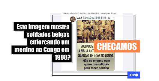 Imagem Publicado em 22/06/2022 É improvável que foto viral mostre soldados belgas prestes a enforcar menino no Congo