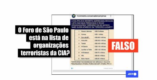 Imagem Publicado em 23/08/2021 O Foro de São Paulo não consta como organização terrorista no site da CIA